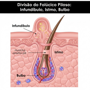 - Istmo: região intermediária, onde ocorre a inserção dos músculos eretores do pelo. É uma zona crucial para a resistência mecânica do folículo.